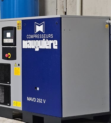 Mauguière est une entreprise française spécialisée dans les compresseurs d'air depuis plus de 70 ans. En tant que partenaire, nous vendons et installons leurs compresseurs à vis et à piston connus pour leur robustesse et leur efficacité énergétique. Ce partenariat nous permet de proposer des solutions sur-mesure adaptées aux besoins spécifiques de nos clients industriels.