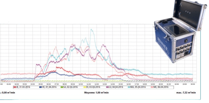 Audit énergétique mis en place chez le client qui permet de mettre en perspective la différence entre les gains énergétiques d'un compresseur à vitesse fixe et vitesse variable