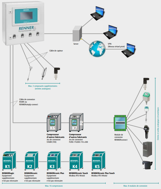 Dans le cas d'une centrale de production d'air comprimé multi compresseurs, l'audit énergétique nous permet de piloter intelligemment les priorités sur l'ensemble de la station par le biais d'un automate centralisé.